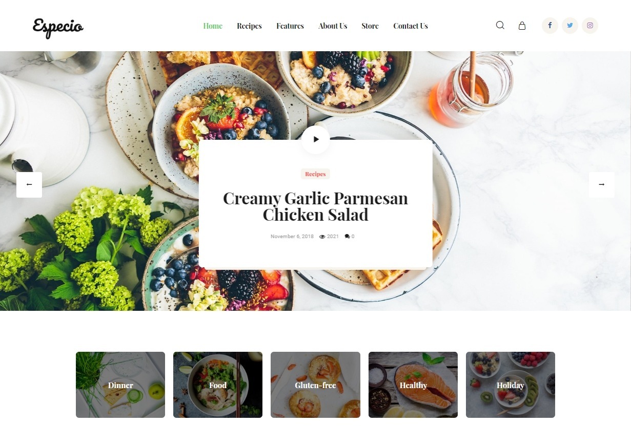 Especio Food Gutenberg Theme for Healthy Lifestyle Blogs