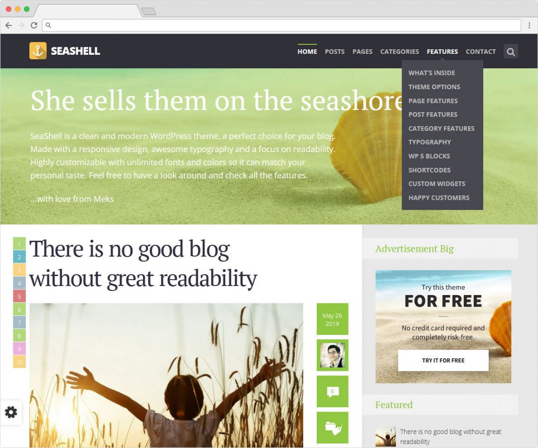 Templified Seashell WordPress Adsense Ready Travel Blogger Theme