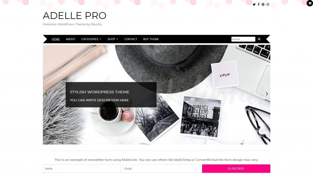 Adelle Pro WordPress Feminine Blog And ECommerce Theme BluChic