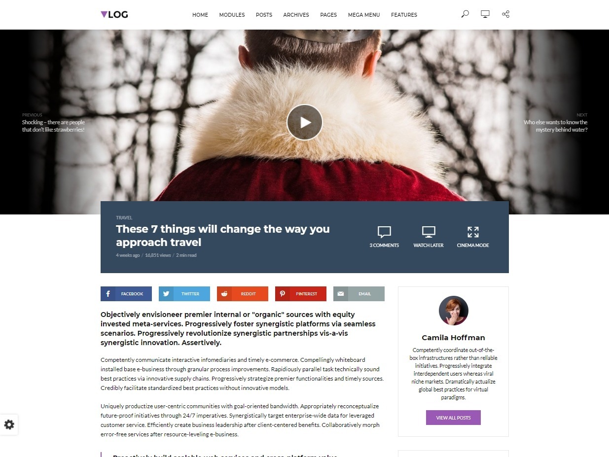 Vlog Video Blog and Magazine Theme for Video Portfolios